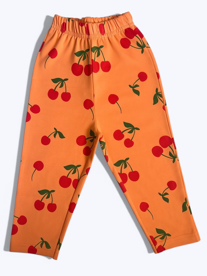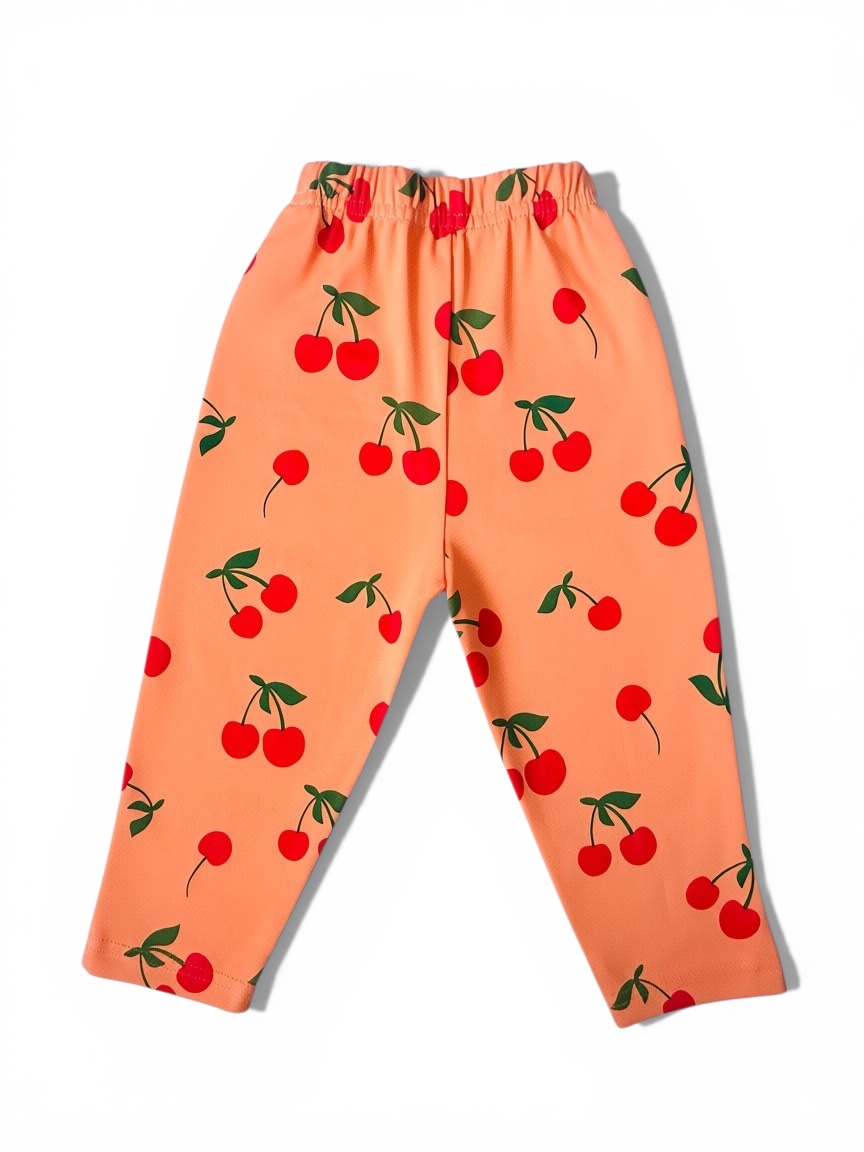 Our Cherry Bloom Leggings in vibrant orange feature an adorable cherry print and are crafted from super soft premium cotton interlock fabric that feels gentle on delicate skin.